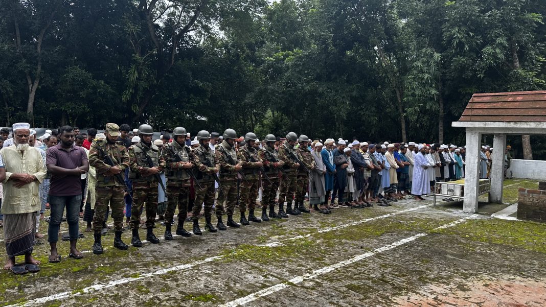 শুক্রবার (২৫ জুলাই) সকাল সোয়া ৯টার দিকে জেলার আলফাডাঙ্গা উপজেলার গোপালপুর ইউনিয়নের বাজড়া দক্ষিনপাড়া ঈদগাহ ময়দানে জানাজা সম্পন্ন হয়। পরে বাজড়া শামসুল উলুম মাদ্রাসা ও এতিমখানা গোরস্থানে মরদেহের দাফন সম্পন্ন করা হয়। জানাজায় আলফাডাঙ্গা উপজেলা নির্বাহী কর্মকর্তা রাসেল ইকবাল, সেনাবাহিনী ও গ্রামবাসী অংশ নেন।