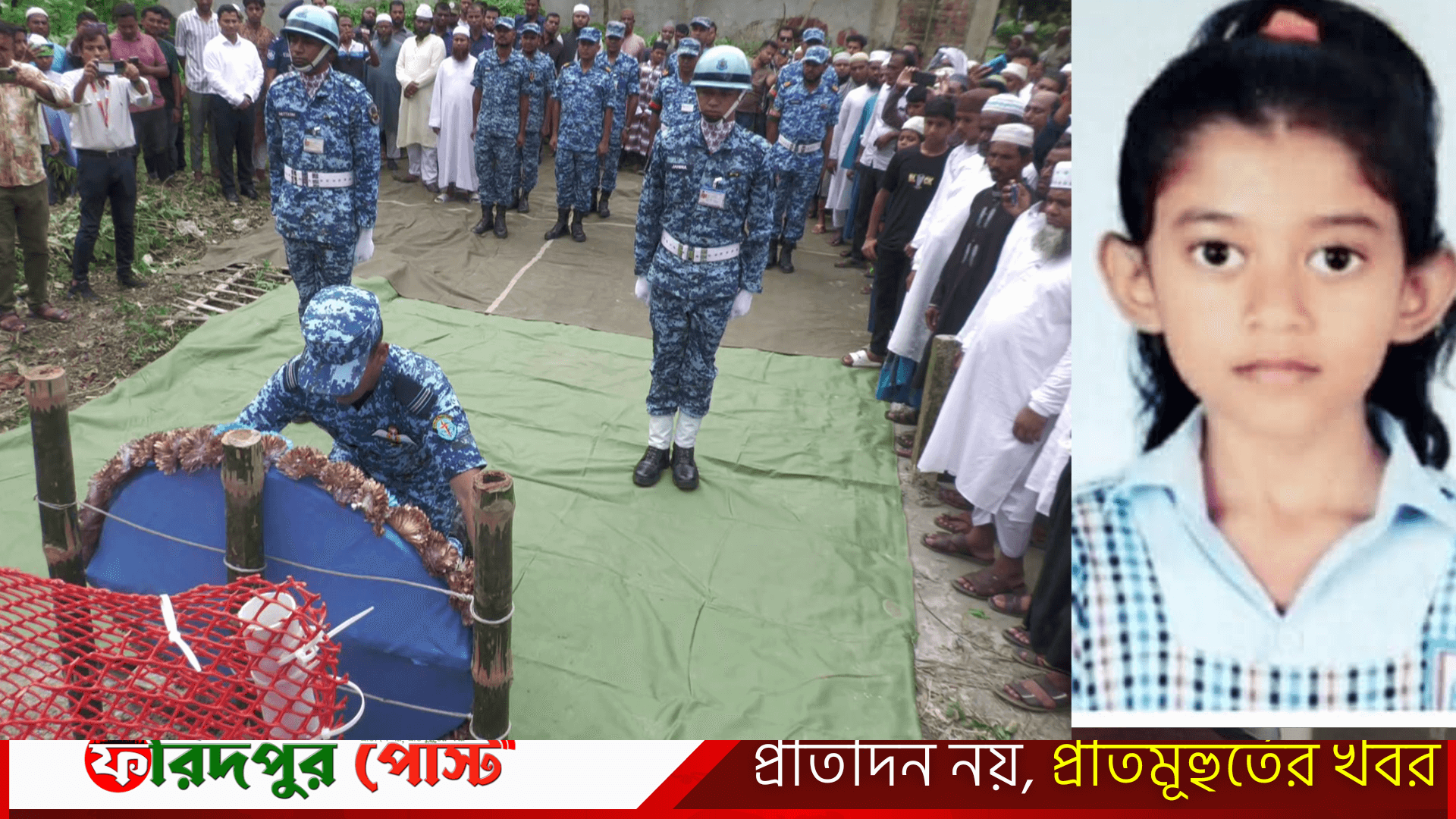 মাইলস্টোন স্কুল অ্যান্ড কলেজে বিমান বিধ্বস্তে নিহত তৃতীয় শ্রেণির ছাত্রী রাইসা মনির (৯) কবরে শ্রদ্ধা নিবেদন করলেন বিমান বাহিনীর সদস্যরা। এসময় নিহত রাইসার পরিবারকে সমবেদনা জানিয়ে সব ধরনের সহায়তার আশ্বাস দেন তারা।